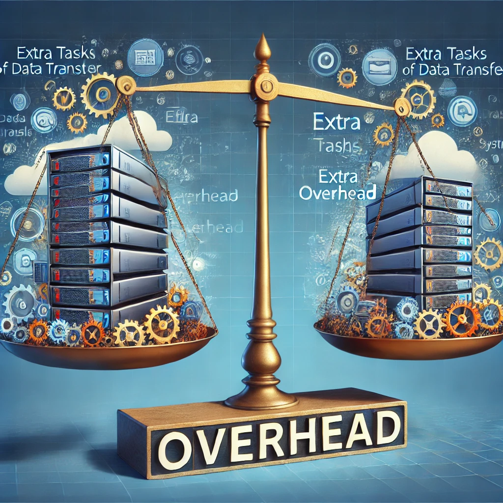 - 데이터 전송 시, 패킷의 헤더 정보 등으로 인해 발생하는 추가적인 데이터량과 처리 비용 = 네트워크 오버헤드