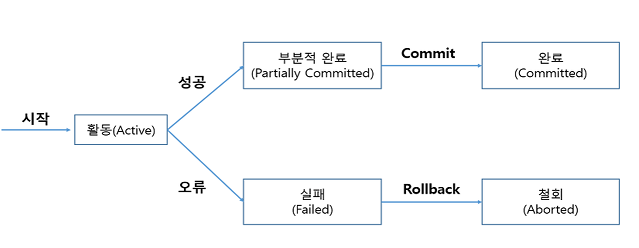 - 트랜젝션으로 인한 하나의 묶음 처리가 시작되기 이전의 상태로 되돌린다.